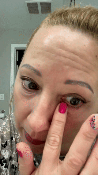 - Lasciare asciugare il prodotto per circa 3-5 minuti, mantenendo un'espressione inespressiva. Non strizzare gli occhi e non sorridere.