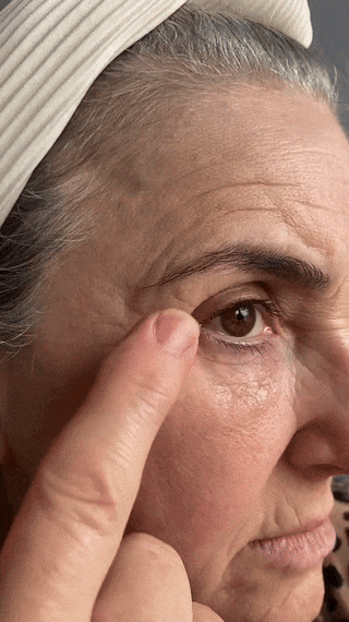 - Con movimenti dal basso verso l'alto, stendere uno strato sottile di gel sulla zona del contorno occhi, sulle zampe di gallina, sulle linee di espressione tra le sopracciglia ("11") e sotto e sopra l'arcata sopracciliare (ma non sulla palpebra).